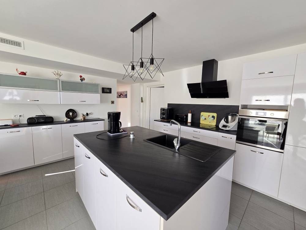 A SAISIR - A proximité de la forêt domaniale et des pistes cyclables, belle maison confortable de 106 m² habitables offrant: pièce de vie lumineuse de 50 m² avec cuisine US aménagée et équipée, 3 chambres dont suite parentale avec salle d'eau-placard-wc, 2ème salle d'eau, 2ème wc, garage de 38 m²; vous profiterez d'une piscine chauffée avec pompe à chaleur et d'une terrasse donnant sur terrain clos aménagé avec goût de + de 400 m². Abri de jardin; Chauffage pompe à chaleur AIR/AIR. A voir sans tarder! Posez vos valises! *Honoraires charge vendeurMontant estimé des dépenses annuelles d'énergie pour un usage standard entre: 610 EUR et 860 EUR - date de référence des prix de l'énergie utilisés pour établir cette estimation : Prix moyens des énergies indexés sur 2021 2022 2023 (abonnements compris)Les informations sur les risques auxquels ce bien est exposé sont disponibles sur le site Géorisques: www.georisques.gouv.fr