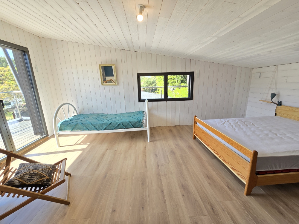 - PALIER/CHAMBRE 3 : bibliothèque (livres fournis) - banquette assise - 1 lit 2 personnes 140cms -
