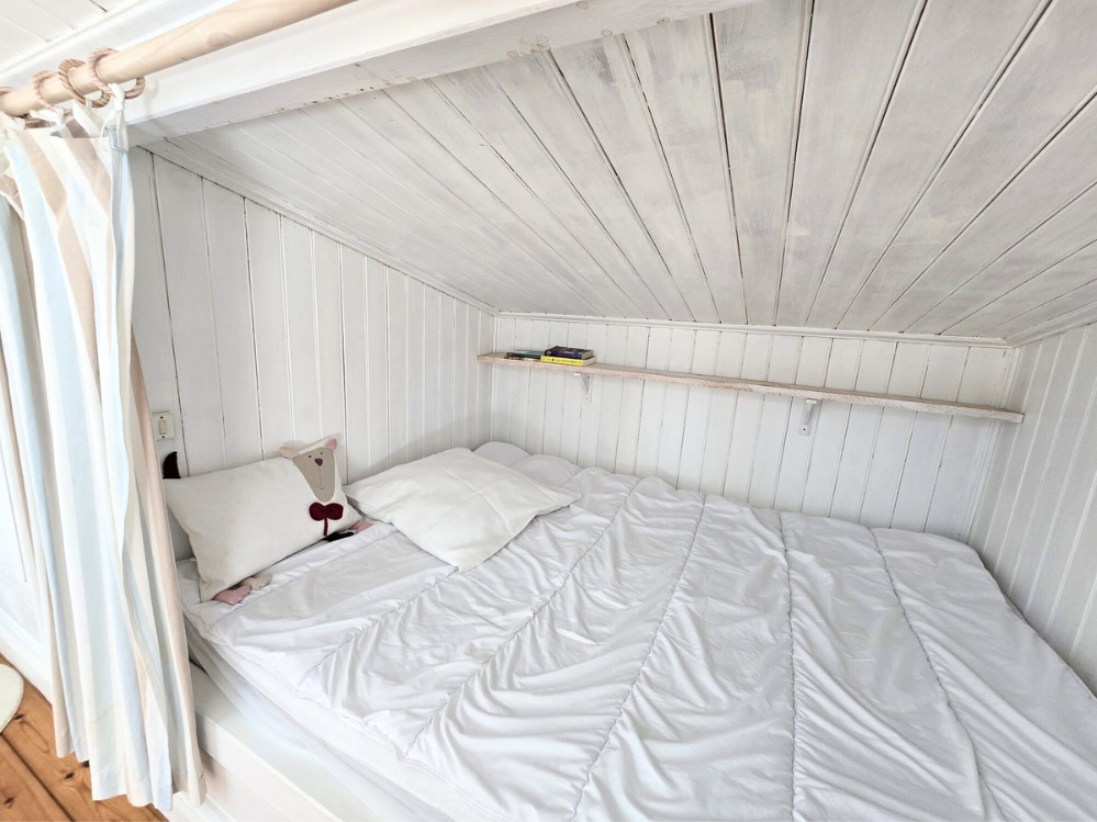 - SALON/SEJOUR : canapé - 2 fauteuils - TV écran plat - cheminée (décoration hors service) - table basse - lecteur CD et DVD - jeux de sociétés -- - MEZZANINE: 1 lit de 80x190cms et 2 lits de 120x190cms - placard - chevet + lampe - ventilateur