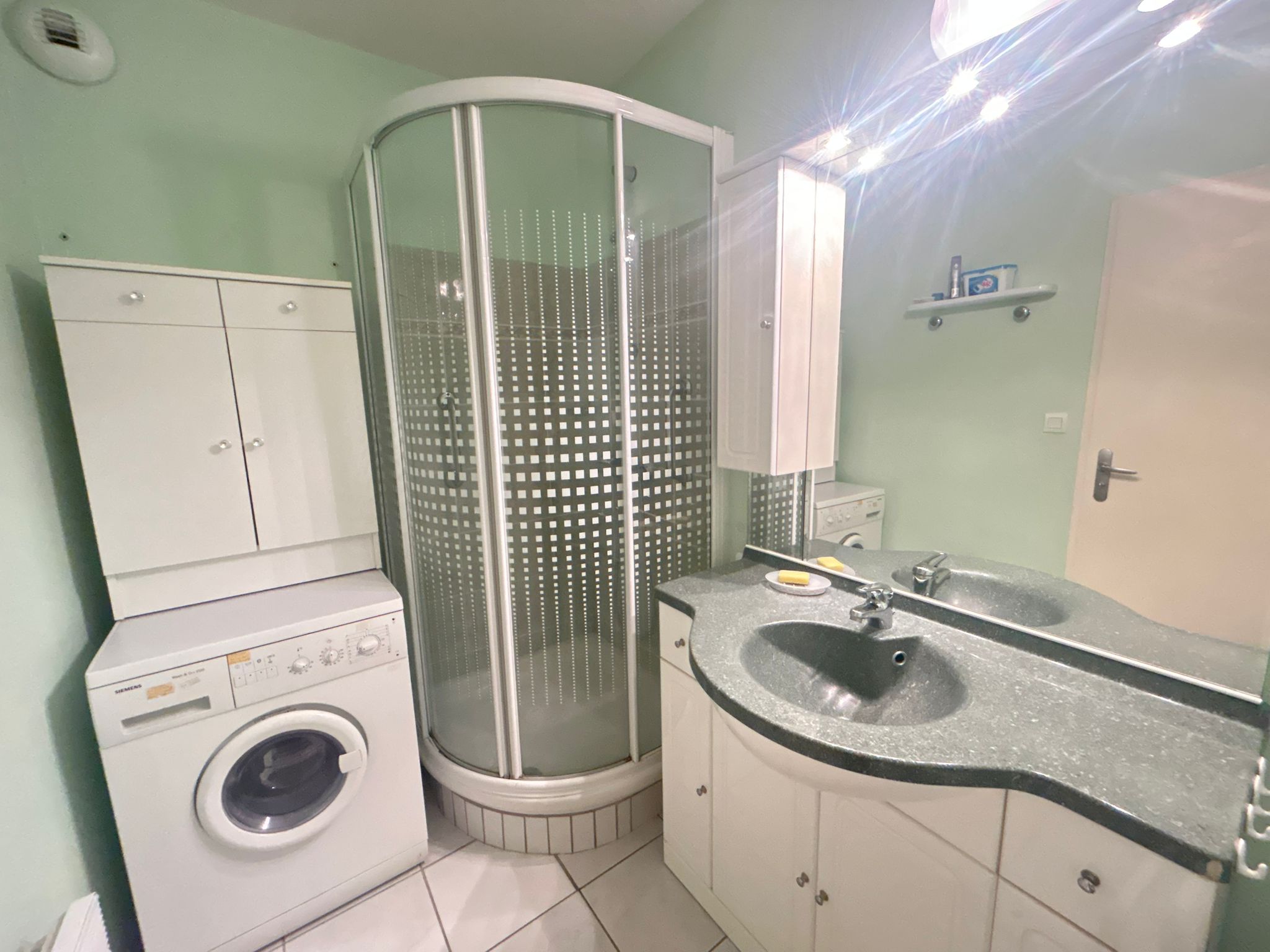 - SALLE D'EAU : cabine douche - meuble - lave-linge - meuble vasque