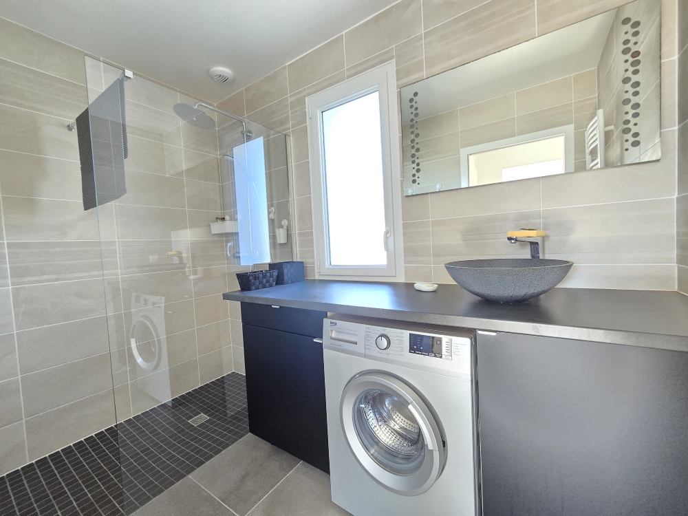 - SALLE D'EAU : meuble vasque - douche italienne - lave-linge - sèche-serviettes